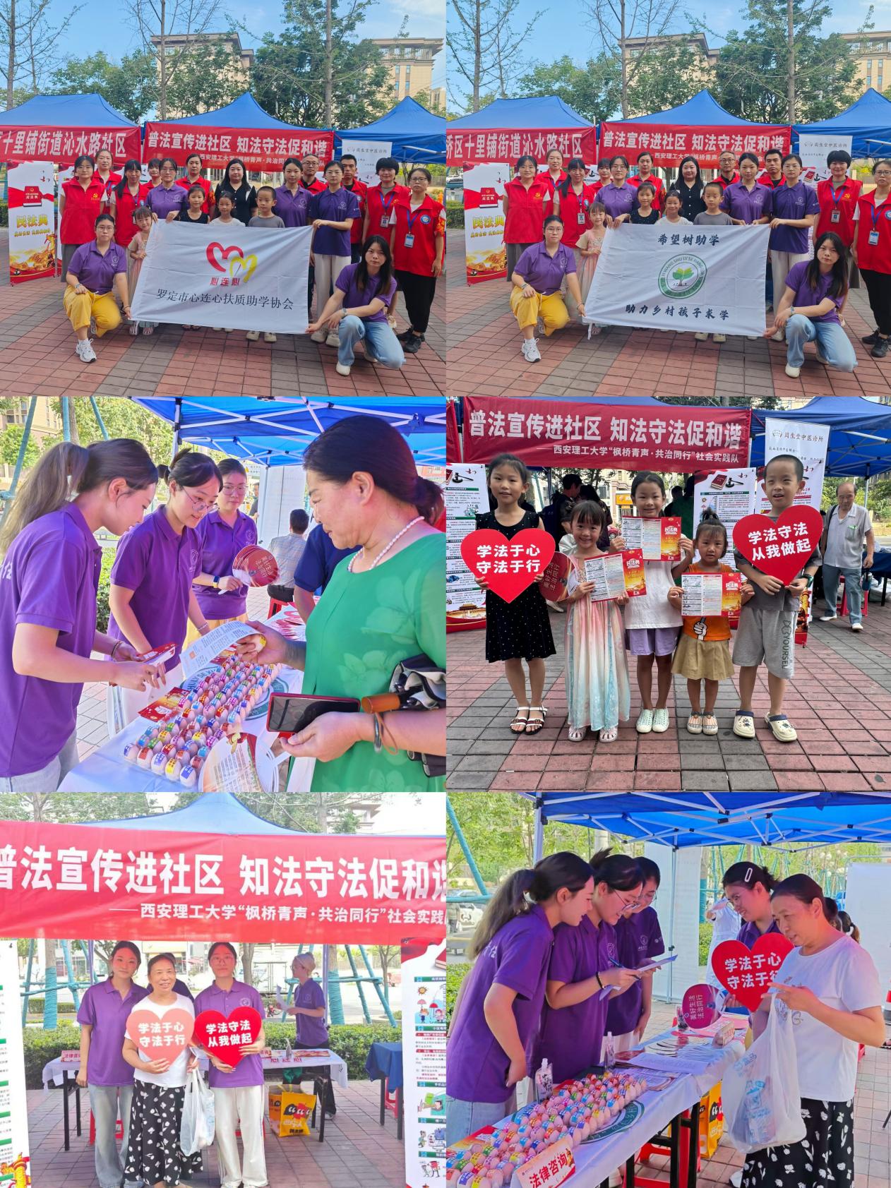 7月18日,實(shí)踐隊(duì)聯(lián)合“希望樹”鄉(xiāng)村振興項(xiàng)目組走進(jìn)灞橋區(qū)十里鋪街道沁水路社區(qū),開展普法宣傳、座談交流及社會(huì)實(shí)踐基地共建活動(dòng)。隊(duì)員們創(chuàng)新推出“普法彩蛋”——將印有“警惕騙局”“民法典守護(hù)美好生活”等標(biāo)語(yǔ)的貼紙貼在雞蛋上發(fā)放給居民。活動(dòng)現(xiàn)場(chǎng)設(shè)置普法展板,志愿者結(jié)合真實(shí)案例和互動(dòng)問答,聚焦婚姻家庭、遺產(chǎn)繼承等居民關(guān)切的法律問題進(jìn)行深入淺出的講解。“拿著帶標(biāo)語(yǔ)的雞蛋,既實(shí)用又長(zhǎng)知識(shí),真接地氣!”居民王阿姨稱贊道。活動(dòng)共發(fā)放普法手冊(cè)200余份,惠及居民150余次,有效提升了群眾法治意識(shí)。