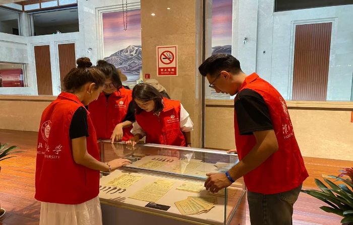 7月27日,實踐團隊走進和田博物館,在講解員的帶領下,隊員們和田厚重的歷史文化底蘊與各民族交往交流交融的燦爛篇章有了更加深刻的感悟。實踐隊員麥迪乃姆·買買提明感慨道:“觸摸歷史的脈搏,我們更深刻理解了‘文化認同是最深層次的認同’。這份厚重的歷史積淀,正是今天我們宣講民族團結、共繪發展藍圖的底氣之源。”