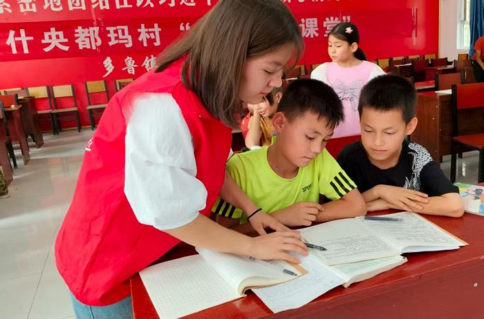 數學課堂上,隊員們通過“生活中的統計”“趣味幾何游戲”等互動形式,將抽象知識轉化為具象體驗;科普課堂則涵蓋航天知識、生態保護等內容,結合多媒體展示與實驗演示,激發孩子們的探索熱情;課程結束后隊員為多魯鄉的孩子們進行作業輔導。