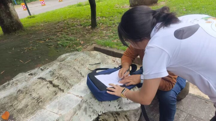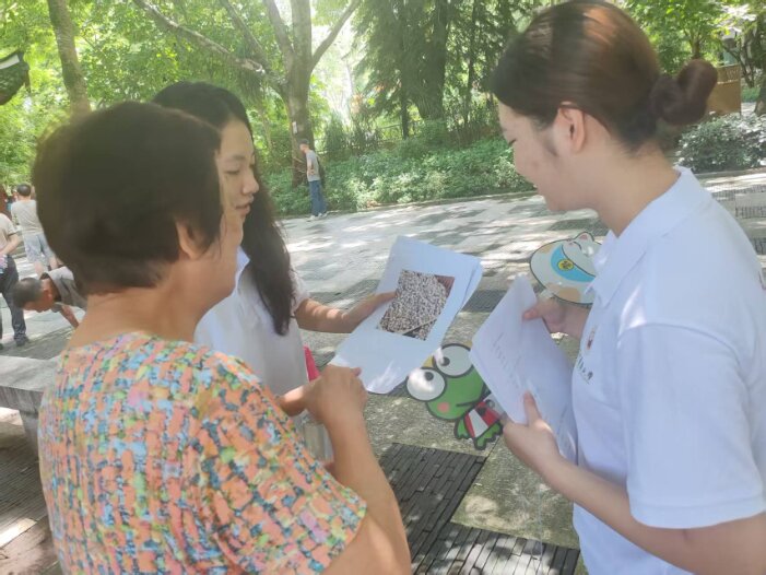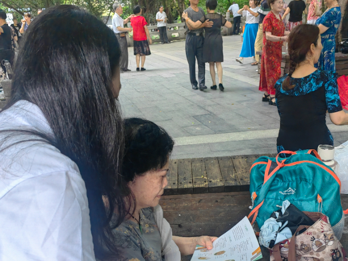 夏日的綠茵下,在泉州海絲公園、漳州老人會等場所,實踐隊隊員以圖文并茂的宣傳冊為載體,向納涼老人普及中藥材知識。宣傳冊上印有日常用語和中藥材圖片。隊員們用標準的普通話講解展示圖片的中藥材功效,如:黃芪能夠補氣升陽;甘草能夠清熱解毒;枸杞能夠明目潤肺。老人們通過圖像直觀學習專業名詞發音。針對部分老人難以理解宣傳冊上的普通話藥材名稱的現象,隊員耐心地用當地的方言對照解釋,其中像“茯苓”、“芡實”等專業詞匯,隊員們用方言描述藥材的形態和功效,讓抽象的中醫藥知識變得通俗易懂。