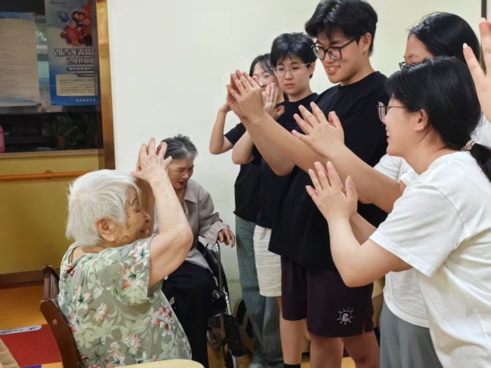 志愿者們主動走到老人身邊,或陪老人做簡單的手指操,耐心地教、慢慢地做,一老一少的手交疊,傳遞著無聲的關懷;或嘗試教老人使用手機簡單功能,“奶奶,這樣點一下,就能和家人視頻啦”,幫助老人架起與外界溝通的橋梁。更多時候,志愿者們單純陪坐聊天,聽老人嘮叨生活瑣事,分享自己在校園里的趣事。一位志愿者握著老人布滿皺紋的手,跟著老人的節奏做手勢,老人臉上綻放的笑容,成為活動最美的印記。還有志愿者和老人同框拍手,定格下這溫馨瞬間,相機記錄的不僅是畫面,更是青春與暮年碰撞出的美好火花。