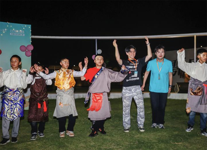 夜晚,秦嶺雪山露營草地音樂會將活動氛圍推向高潮。在星空與草地的陪伴下,大家圍坐在一起,欣賞著美妙的音樂,共同度過了一個歡樂而難忘的夜晚。音樂與歡笑交織,陜藏兩地的情誼也在這一刻更加深厚,真正詮釋了“石榴籽一家親”的深刻內涵。