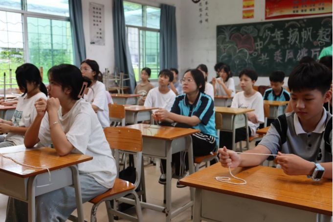 初到溪山中學,實踐團成員發(fā)現(xiàn)孩子們普遍內(nèi)向靦腆,眼神中卻充滿好奇。坐在教室最后一排的男孩澤西(化名)尤為安靜,互動寥寥,臉上鮮有表情。成員們了解到,澤西(化名)是跟隨上初中的姐姐一同前來聽課的,陌生的同學和環(huán)境讓他格外內(nèi)斂。