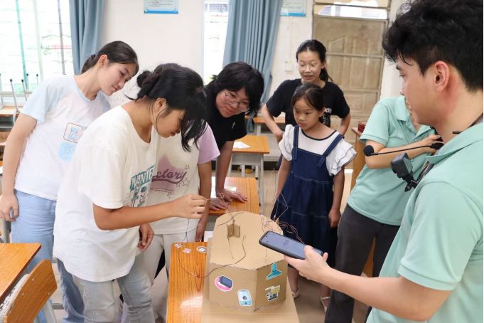 寓教于樂:搭建心靈溝通的橋梁 除課堂教學外,實踐團還開展了心理團體輔導、戶外拓展活動、主題電影賞析等多種形式的教娛融合活動。這些活動不僅有效提升了學生的學習興趣和效果,也培養(yǎng)了他們的創(chuàng)新思維與實踐能力。更重要的是,孩子們逐漸敞開心扉,愿意大方表達自己的想法,師生間的心理距離不斷拉近。實踐團成員留意到,澤西(化名)雖然依舊安靜,卻對這項活動表現(xiàn)出了特別的興趣和熱情。