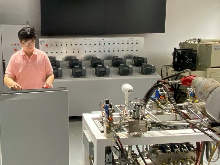團隊成員們在工程師的帶領下走進了智能化的制造區域,見證了焊接機器人的精準高效。隊員們專注地觀察著機器人,工程師詳細講解其如何在鋼軌、橋梁等大型構件上實現焊縫均勻且美觀,并保持極高的重復精度。隨后,針對隧道掘進的核心裝備—盾構機,工程師深入解析了其刀盤系統焊接的獨特工藝。雖然機器人可勝任高強度、高風險或高精度的重復作業,但復雜決策、創新設計及現場應急處置仍需依靠工程師的智慧與經驗。這次參觀讓隊員們深刻感受到智能化技術如何變革傳統制造模式。隊員們望著焊接機器人流暢劃出的火紅星弧,聆聽著盾構機操作臺傳回的深沉嗡鳴,圍聚在操控界面的藍光屏前久久未散。