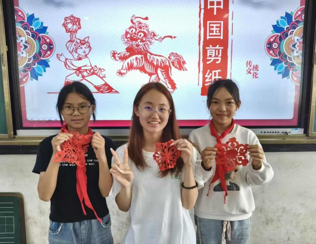 蒙自的活動以“團結與非遺”為雙主線,既有宏觀認知,又有動手實踐。“五十六個民族分布圖”前,志愿者指著地圖講解:“漢族主要分布在東部,藏族在青藏高原…… 但無論在哪里,我們都是中華民族大家庭的一員。”隨后通過“節日猜猜看”互動,在問答中,各民族的習俗差異與文化共性逐漸清晰。傳統手工體驗課更是人氣爆棚:剪紙課上,孩子們跟著志愿者剪出“福”字與窗花,感受“紙上生花”的奇妙;植物拓印環節,用牽;ā魅~在布上敲印,將自然之美與手工智慧結合;百福圖創作中,不同字體的 “福”字匯聚成卷,寓意“各族同福”。
