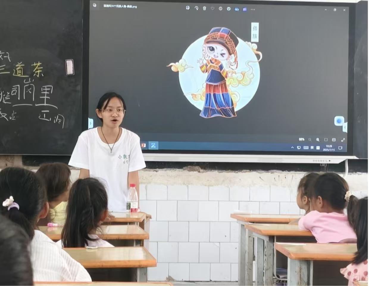 宜良團隊在教室里進行了紅色電影賞析,《湄公河行動》與《我和我的祖國》兩部影片讓孩子們在光影中觸摸家國情懷。播放《湄公河行動》時,緝毒警在叢林里匍匐追擊、用身體擋住子彈的畫面,讓孩子們攥緊了小拳頭。當《我和我的祖國》中女排奪冠的歡呼聲響起,幾個女孩跟著屏幕里的觀眾一起拍手,眼里閃著光。光影里的感動,正隨著支教的腳步,在孩子們心中種下愛國的種子。