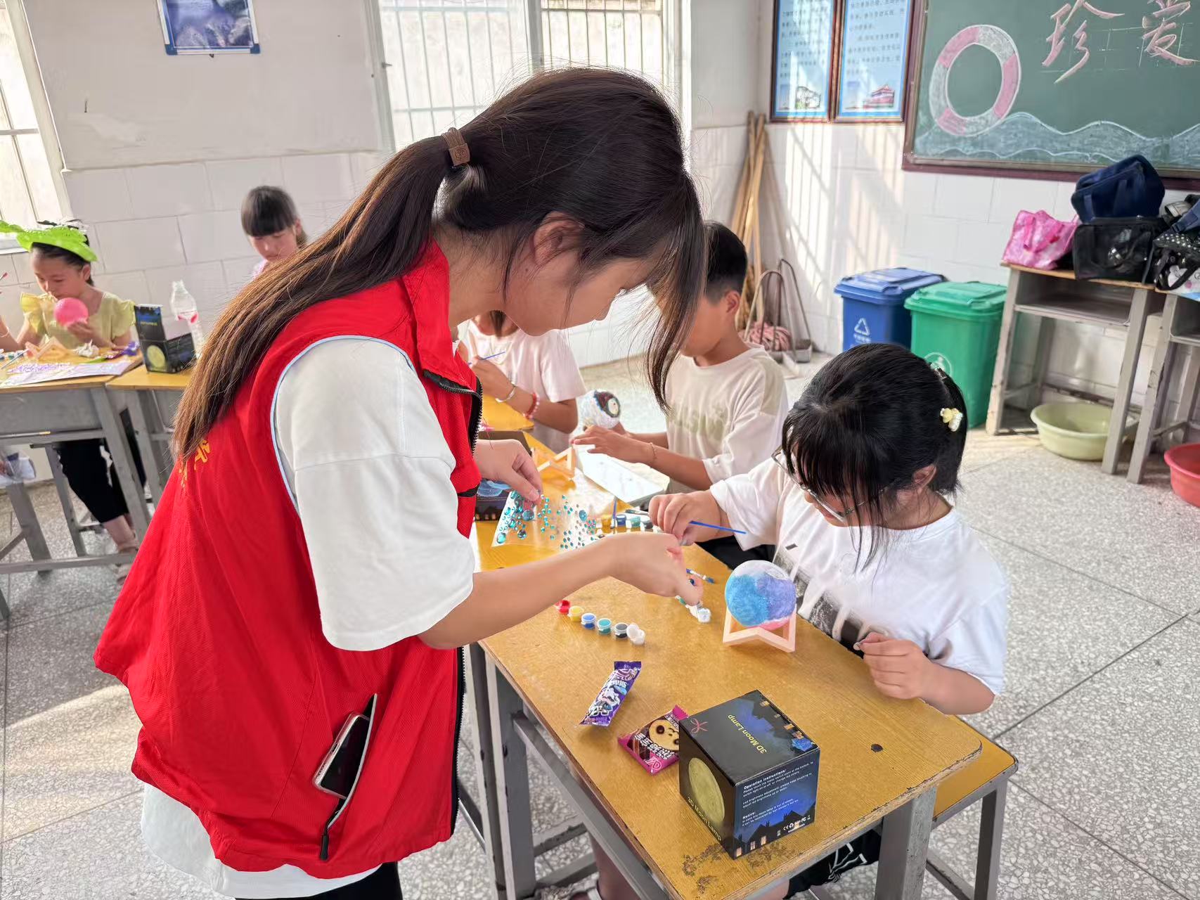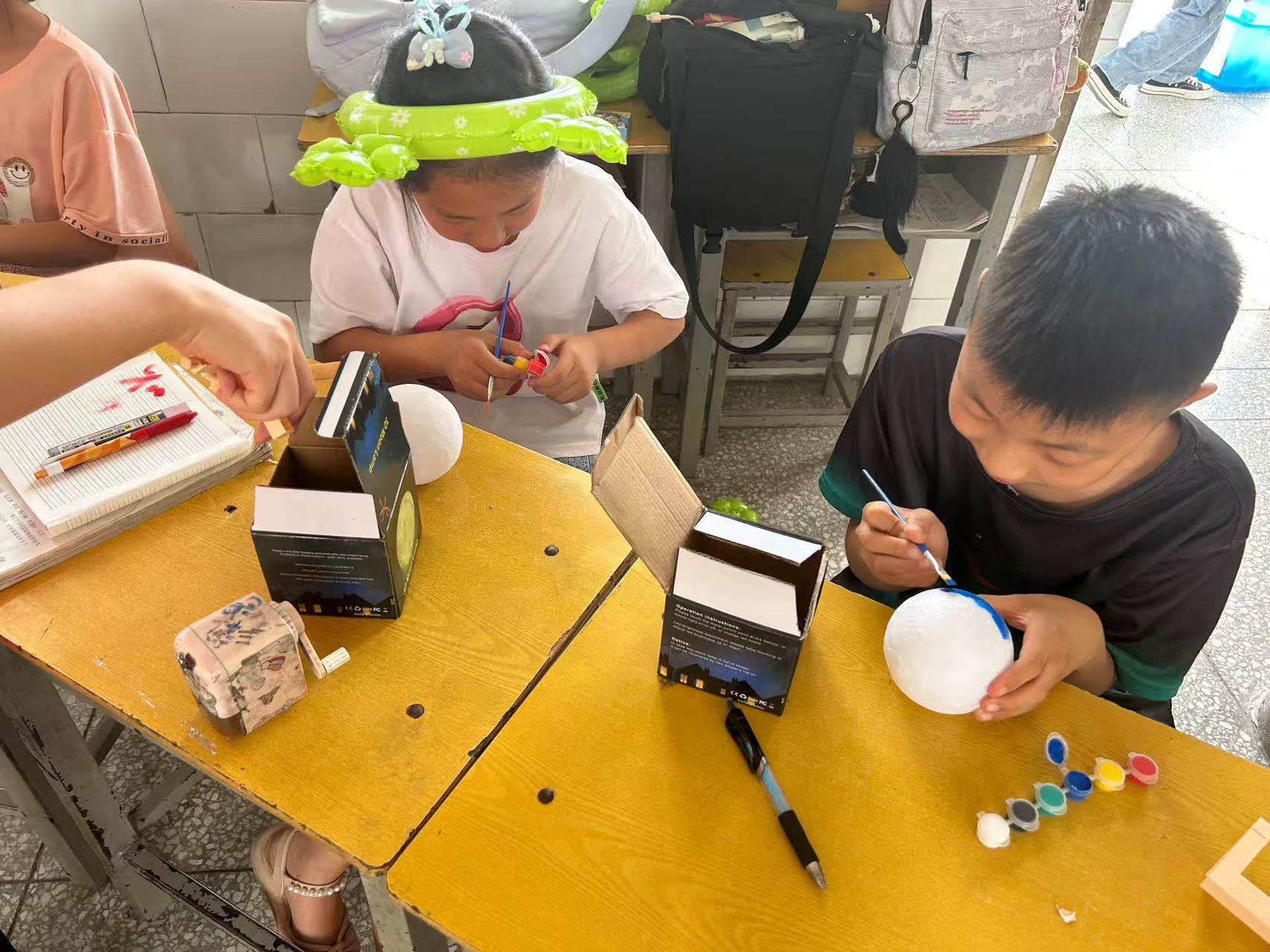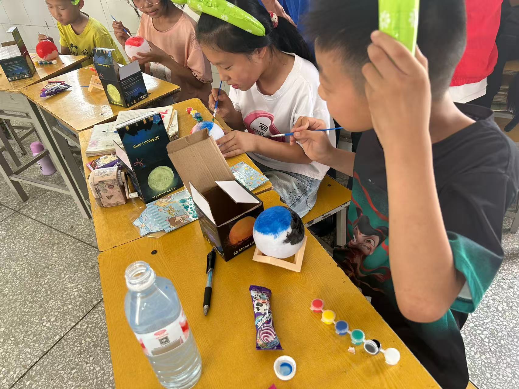 活動伊始,志愿者們精心準備了妙趣橫生的手工繪畫課程。課堂上,孩子們熱情高漲,在志愿者的耐心指導(dǎo)下,拿起畫筆,在空白的球體模型上盡情揮灑創(chuàng)意,描繪出一幅幅色彩斑斕、充滿想象力的圖案。有的孩子畫出了心中的美麗家園,有的則描繪出浩瀚神秘的星空。每一件作品都展現(xiàn)著孩子們對生活的熱愛和對未來的憧憬。