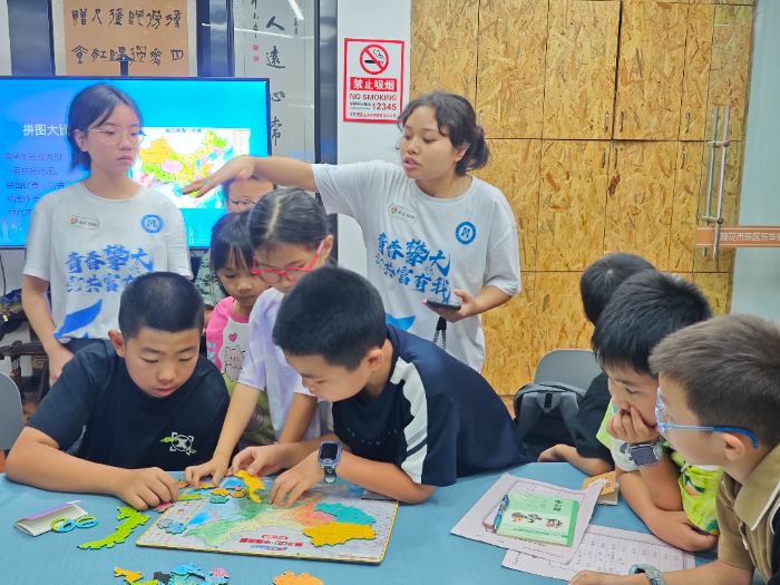 圖為志愿者指導(dǎo)小朋友進(jìn)行地圖拼圖。梁玉婷供圖