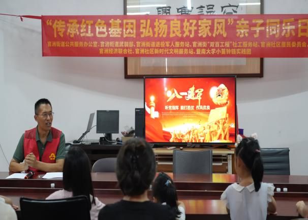 在活動正式啟動前,團隊通過前期走訪和調研了解到,轄區內不少家庭在親子關系方面存在溝通不暢、情感疏離等問題。尤其是暑期來臨后,大量兒童因父母工作繁忙而缺乏陪伴,陷入“情感孤島”。他們在成長中渴望被傾聽、被理解,也渴望一個可以共同游戲、共同創作的親子空間。在此背景下,暨南大學“小苗鈴鐺”實踐團決定以“八一”建軍節為契機,聯合官洲街道,策劃此次融合紅色文化教育與親子家庭互動的主題活動,既為孩子們打開一扇了解“家與國”的窗口,也為家長提供一次深入走進孩子內心的機會。
