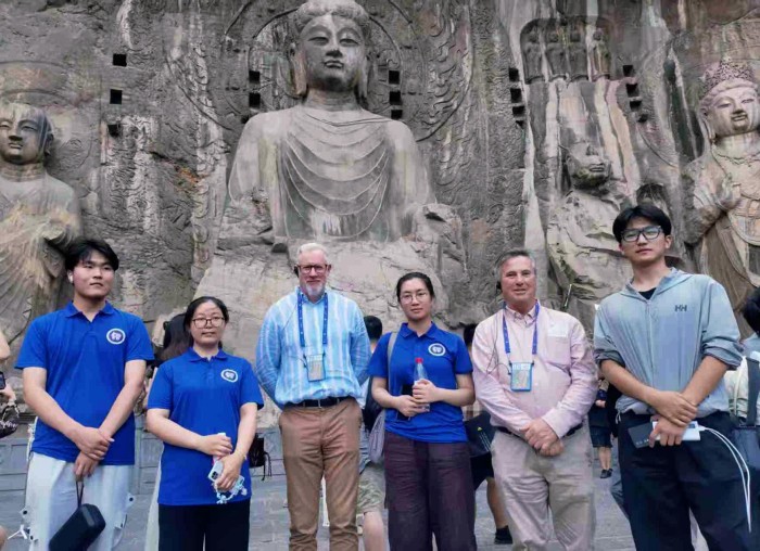 洛陽:領略龍門古韻,守護文化瑰寶7月15日,實踐團首站走進洛陽龍門石窟,探秘這一擁有1500多年歷史的世界文化遺產。成員們沿著伊河畔的石窟群一路探訪,先后駐足奉先寺、賓陽三洞、萬佛洞等核心洞窟,留意洞窟內保存的歷代題記與雕刻細節,感受不同朝代藝術審美與宗教文化的交融。作為北魏時期始建、歷經多朝代營造的藝術瑰寶,龍門石窟的10萬余尊佛像凝結著工匠智慧,見證了中外文化交流。成員們在感受其藝術震撼的同時,深刻銘記習近平總書記今年5月考察時對文物保護的重要指示,紛紛表示將積極宣傳文物保護知識,以實際行動守護這一千年文化瑰寶,助力傳承中華民族優秀歷史文化。