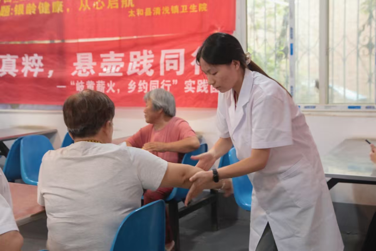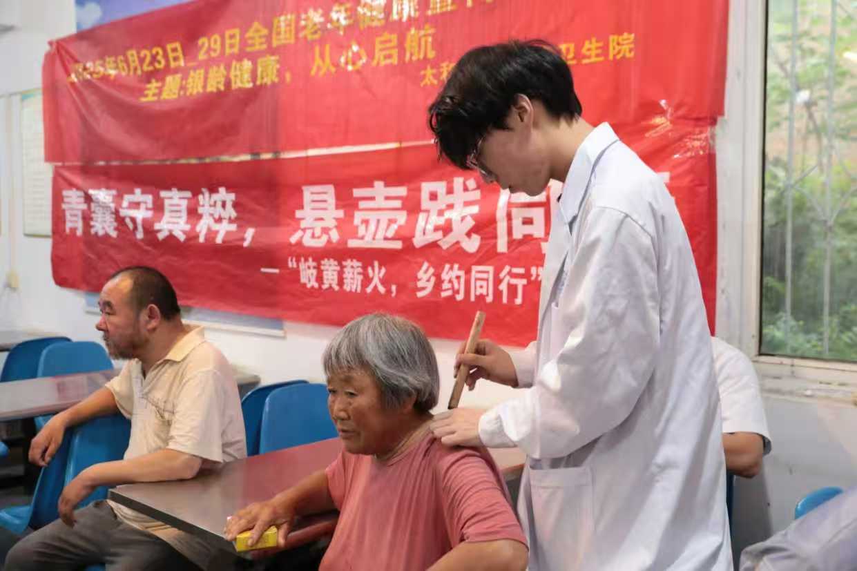 8月6日,安徽中醫藥大學“岐黃薪火,相約同行”三下鄉實踐團深入安徽省阜陽市太和縣清淺鎮養老院,以志愿服務守護銀齡健康。篩查組為老人進行血壓、血糖檢測,并建立起健康檔案以便后續跟蹤。問診組醫生細致了解老人身體狀況,針對常見的慢性病問題給出調理建議。艾灸組運用艾灸、推拿等中醫方法,有效緩解老人的頸肩腰腿疼痛。第二天,團隊轉赴三大文化陣地:在烈士紀念館的硝煙印記中感悟紅色使命,于博物館的千年藥典里溯源岐黃薪火,更在趙集民藝館的書法墨香中探尋健康鄉村基因。