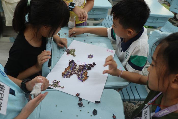 圖為孩子們一起制作中藥飲片畫。黃韻潼攝
