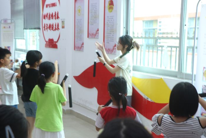 為積極響應廣東省"百千萬工程"鄉村教育提質號召,廣州南方學院青藤義教隊于2025年7月14日至19日奔赴佛山市南海區平西社區映月第四小學,開展“知行未來,與你'童'在”的暑期實踐活動。6天里,以文化傳承為筆、心理賦能為墨、實踐探索為紙,為學生繪就別樣暑期成長畫卷,填補社區暑假兒童教育真空,構建“非遺傳承×心理賦能×社區共育”生態。