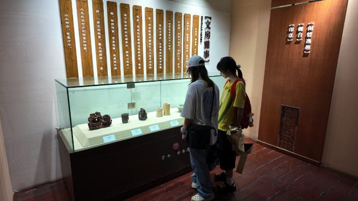 圖為實踐團隊在崇州市博物館拍攝。賴夢瑤攝