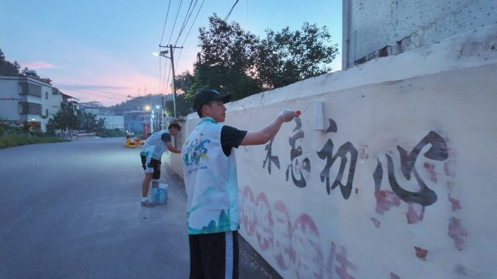 “烈日灼身汗未干,舊墻覆白換新顏”,正是隊員們勞作場景的真實寫照。這素白的墻面,是他們為鄉村美化打下的堅實基礎,亦承載著他們對鄉土的熱愛與責任。
