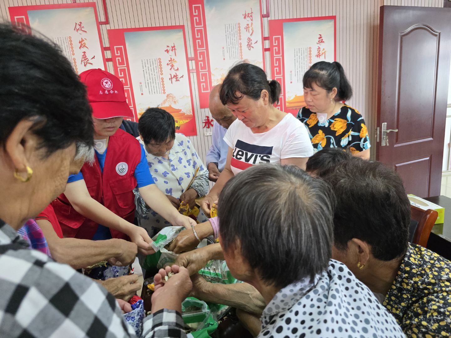 圖為華園藥院青年實踐團隊成員與村民們一同制作香囊。黃千毓 供圖