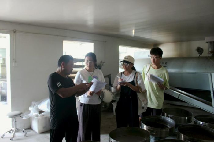 2025年7月9日,實(shí)踐團(tuán)隊(duì)前往日照市嵐山區(qū)高興鎮(zhèn),主要針對(duì)鎮(zhèn)中潘家洼村、安家湖村、卜家村、汪家莊村等地常住農(nóng)戶(hù)、茶廠老板等人群進(jìn)行問(wèn)卷提問(wèn),為提高問(wèn)卷調(diào)查效率,實(shí)踐隊(duì)員在田間小路快步穿行,隨機(jī)采訪茶田中正在勞作的采茶人,同時(shí)探訪多家茶廠,實(shí)地調(diào)查茶葉制作,近距離了解制茶過(guò)程。