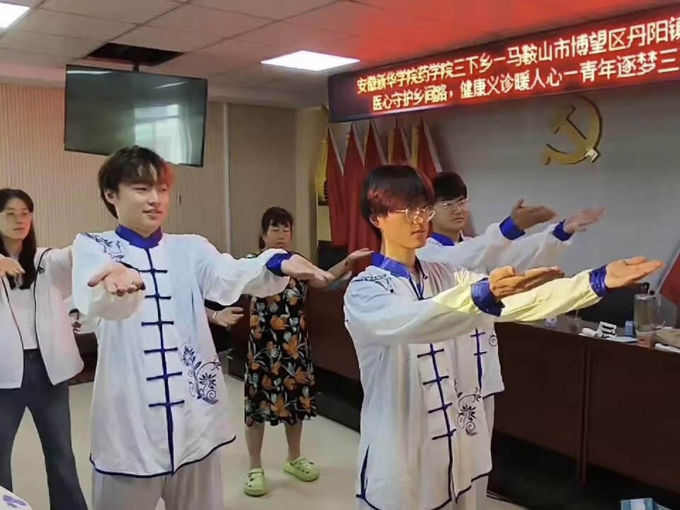圖為“華園藥院青年”實踐團隊帶領村民學習五禽戲。劉含君 供圖