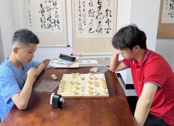 圖為團隊隊員與孩子下棋對弈陪伴孩子的閑暇時光。竇振月 供圖