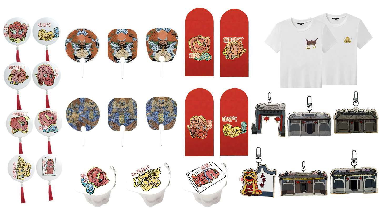 針對三華村打造特色文旅品牌的需求,Young實踐團以三華村古建筑中常見的灰塑蝙蝠形象為靈感(“蝠”與“福”同音,象征福氣),將“小福”確定為核心IP形象。文創組同學設計出了“小福服了”“福報”“討福”“福氣”“福壽”“福到了”等衍生形象,采用圓潤線條與濃烈色彩,塑造可愛呆萌風格,并將其應用于扇子、文化衫、紅包等多種日常用品。張穎同學表示,這些IP形象及文創產品既能拉近距離、強化情感聯結,又能通過實用功能傳播文化,提升品牌影響力。
