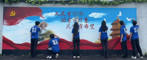 實踐成員描繪“紅色文化墻”
