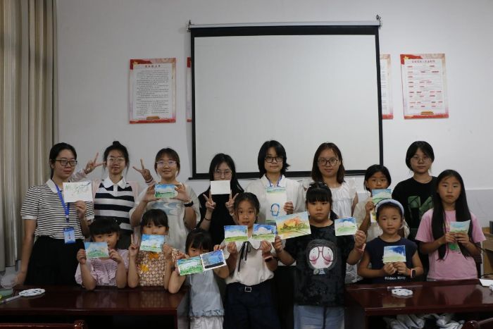 繪畫互動(dòng)拉近了實(shí)踐團(tuán)與小朋友之間的距離。同學(xué)們用畫筆讓小朋友們釋放想象、盡情創(chuàng)作,傳播熱情與愛心,體現(xiàn)志愿服務(wù)的精神。活動(dòng)結(jié)束后,小朋友們舉著自己的畫作和同學(xué)們一起合影,鏡頭記錄下他們藝術(shù)創(chuàng)作的溫馨時(shí)刻,也彰顯了社會(huì)服務(wù)中的愛與溫暖。
