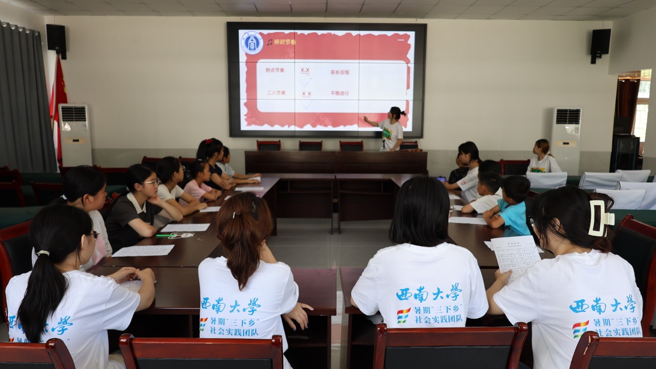 為弘揚(yáng)中華美育精神,堅(jiān)定文化自信,小分隊(duì)成員結(jié)合自身專(zhuān)業(yè)優(yōu)勢(shì),在石泉村黨群服務(wù)中心活動(dòng)室為當(dāng)?shù)貎和_(kāi)展了一堂別出心裁的鄉(xiāng)村美育課。