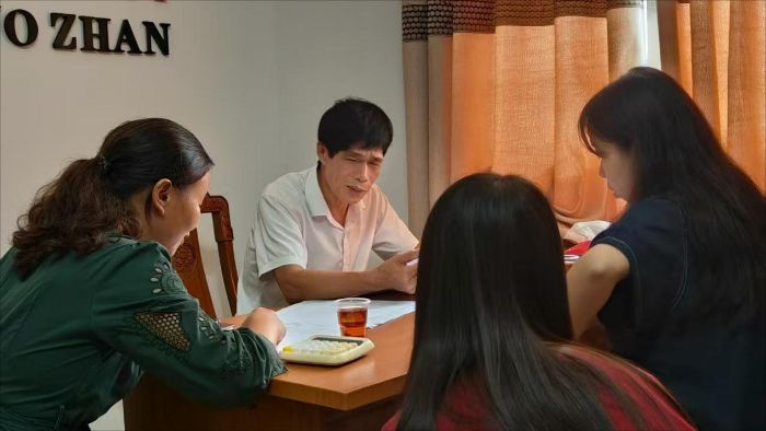 突擊隊(duì)成員對(duì)云沙村村干部進(jìn)行訪談 漆佳螢 攝