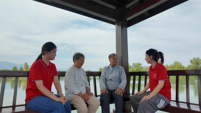 渼陂湖地處秦嶺與關(guān)中平原過渡帶,源流渼水發(fā)源于終南山,自古潤澤四方。唐代為長安近郊盛景,明清文人雅士更將其凝練成“空翠野煙”“杜堤醉柳”等八景。從皇家苑囿、雅集勝地到市井煙火,渼陂湖堪稱長安文脈 “從廟堂之高走向江湖之遠(yuǎn)” 的縮影,歷經(jīng)千年沉淀,它已深深融入鄠邑人 “山水家國共融、大雅大俗共生” 的精神基因。調(diào)研中,實踐團還與當(dāng)?shù)鼐用瘛⒐ぷ魅藛T深入交流,了解他們對水生態(tài)保護的認(rèn)知與期待,并借此契機現(xiàn)場宣傳秦嶺-渼陂水文化,積極倡導(dǎo)科學(xué)生態(tài)保護理念。