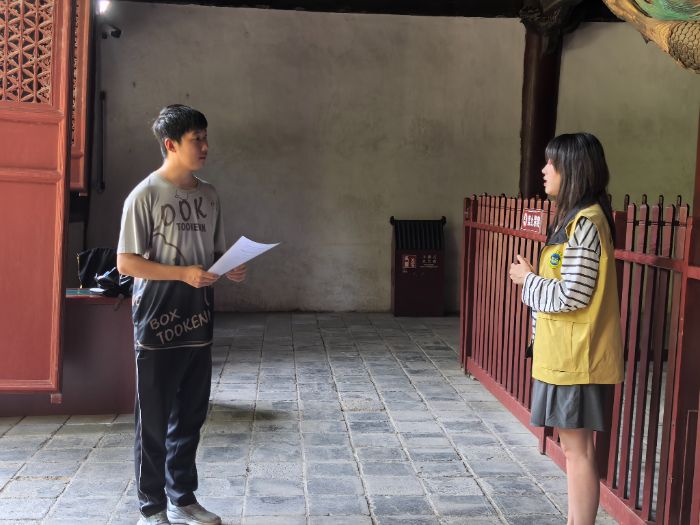 在參觀報(bào)恩寺過(guò)程中,隊(duì)員們還注意到了許多正在播放講解的電子屏幕。在采訪中問(wèn)到關(guān)于在文化傳承中對(duì)新媒體的嘗試與規(guī)劃方面,李詩(shī)嘉表示,文化傳承的活力離不開(kāi)青年力量,目前我們正以開(kāi)放姿態(tài)推動(dòng)合作,期待青年群體以創(chuàng)意賦能遺產(chǎn)保護(hù),讓青年智慧與歷史遺產(chǎn)碰撞出更多火花。從數(shù)字化講解到新媒體創(chuàng)新、青年實(shí)踐,平武正以“數(shù)字化傳播+年輕化參與”的模式,讓歷史文化在傳承中煥發(fā)新生。