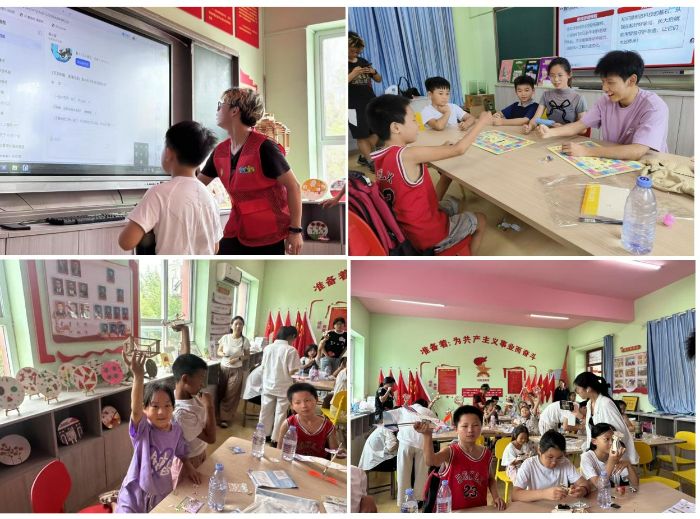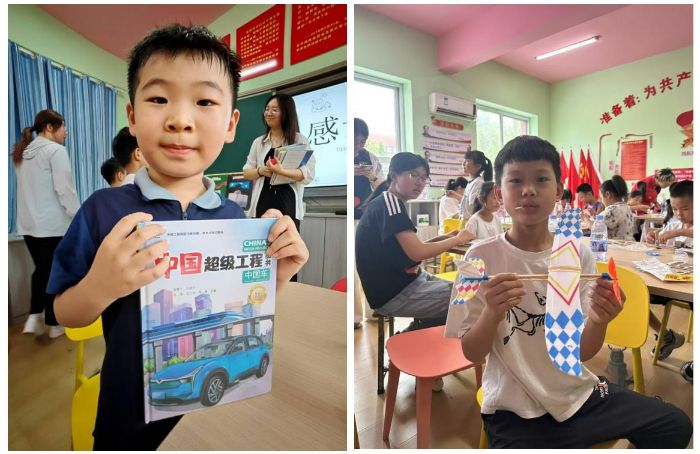 8月6日展開軍事科普課,志愿者通過"兵種連連看"游戲講解海軍、空軍職責,多位孩子準確匹配"殲-20戰斗機"與"空軍"。手工環節,跳棋對弈、黏土創作、剪紙體驗同步進行,教室化作歡樂海洋。