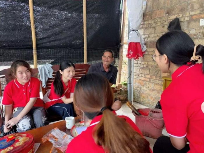 【政策宣傳進鄉村,方言溝通暖人心】 走訪發現,兩村以留守老人與兒童為主,雷州話是日常交流的“通行證”。團隊中精通雷州話的隊員立刻化身“政策翻譯官”,用帶著鄉音的家常話打開話匣:“阿婆,您孫仔要是考上大學,學費不夠可以找國家借錢,不要利息的……”他們圍繞國家助學貸款的申請額度、還款期限,國家助學金的發放標準等細則,結合村民關心的“讀書花錢多”“手續太復雜”等疑慮,用方言和通俗易懂的話語逐一拆解政策,確保每個有需求的家庭都能吃透政策、用對政策。