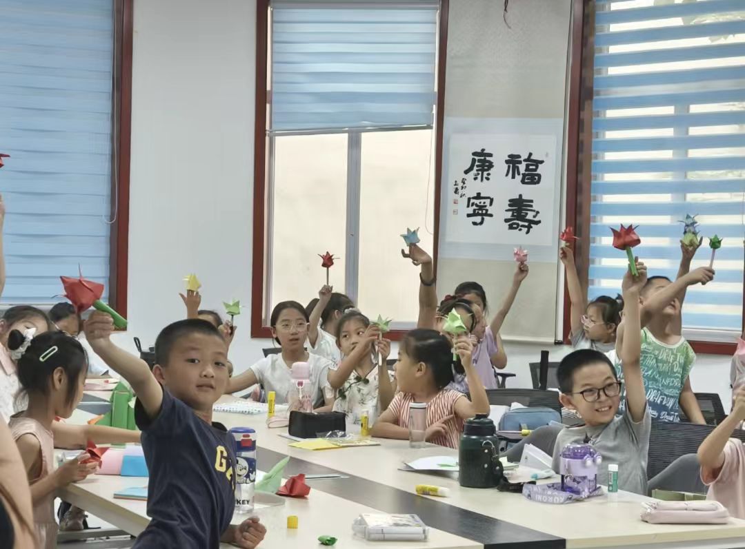 如今,托管班的墻上貼滿了孩子們的作品:稚嫩的書法、五彩的拓印、折紙郁金香組成的“花海”,每一件都承載著夏日的記憶。當志愿者與孩子們圍坐在一起,分享21天的收獲時,社區負責人感慨道:“‘向陽花開’不僅是一個托管班,更是青年反哺社會的生動實踐。”