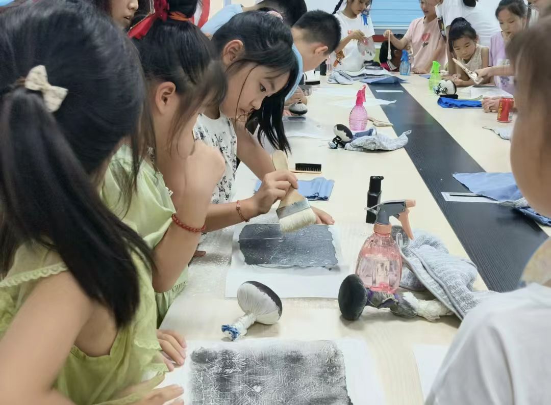 圖為孩子們在非遺拓印課上,使用工具進行拓印體驗。鄭佩怡供圖