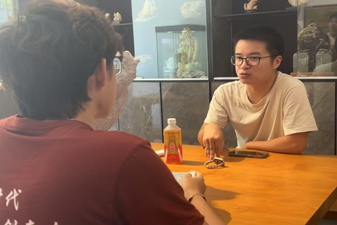 采訪中,胡先生與實踐團成員們親切交流,熱情分享了他歸國創業的心路歷程和非遺傳承的寶貴經驗。他鼓勵青年學子:“要勇于追逐自己的夢想,更要敢于扎根腳下的土地。廣闊的鄉村天地大有可為,期待廣大青年學子們能夠運用所學的知識和青春的激情,為鄉村振興貢獻實實在在的力量。”實踐團成員仔細觀摩了一件件栩栩如生的雕刻作品,指尖仿佛能觸摸到歷史的紋路與匠心的溫度,深切感受到了非遺文化的獨特魅力和深厚底蘊。