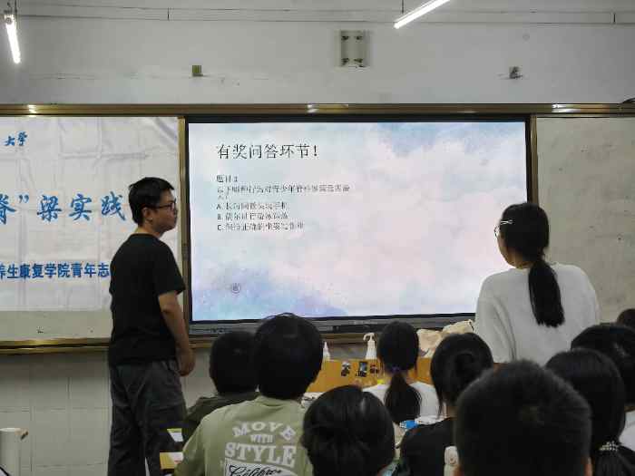 8月6日,實踐團將感悟轉化為行動,走進全州縣全州高級中學。團隊成員劉政江充分發揮針灸推拿專業優勢,為37名高三學子帶來了一場主題為“守護脊柱,挺直未來”的科普講座。講座內容深入淺出,聚焦青少年常見的脊柱健康問題,詳細講解了脊柱結構、日常防護要點(如正確坐姿、站姿)及簡易保健方法。