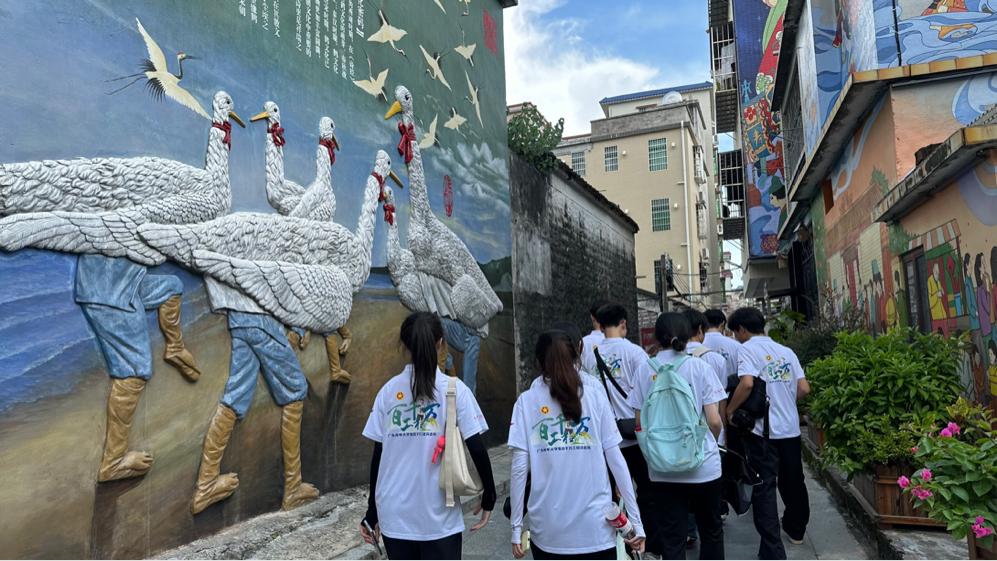 海澄村歷史悠久,文化資源豐富,古老的民俗與現代生活相互交織,形成了獨特的地域風貌。村內非遺主題涂鴉遍布墻面,以新穎的藝術形式展現了年輕一代對傳統文化的理解與創新;“鶴園”,古樹群等景觀則承載著當地傳統藝術的印記,讓我們在行走間感受到歷史與當下的共鳴。