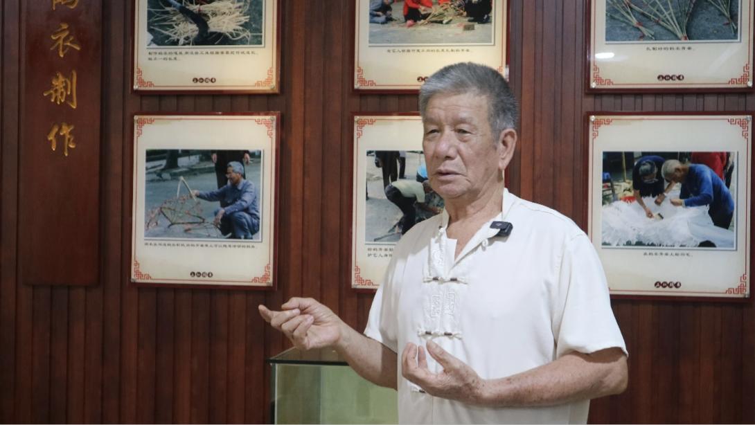 館內珍藏的鶴舞道具與資料,系統展現了這一傳統藝術的發展脈絡。湯福文老人詳細講解了鶴舞的起源、儀式流程及文化寓意,介紹了“年三十制新鶴、開光念祝詞、拜年送祝福、舊鶴衣“羽化”等傳統習俗。三灶鶴舞以白鶴為象征,寄托著百姓對長壽、吉祥的美好愿景,其傳承不僅是技藝的延續,更是文化精神的傳遞,讓我們深切感受到傳統藝術在當代的生命力。