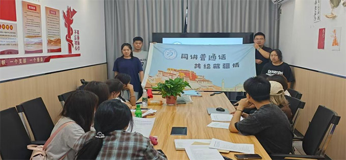 一、青春誓言,服務(wù)邊疆 在莊嚴(yán)的出征儀式上,15名師生高舉隊(duì)旗宣誓,以“用腳步丈量邊疆,用語言傳遞溫情”為鏗鏘有力的誓言,以“專業(yè)知識(shí)和青春熱情服務(wù)邊疆群眾,為民族團(tuán)結(jié)與區(qū)域發(fā)展貢獻(xiàn)力量”為信念,下定決心讓推廣普通話之花綻放在雪域高原與巍峨昆侖。團(tuán)隊(duì)精心籌備雙語宣傳材料、教學(xué)方案及調(diào)研工具,明確“政策宣講+文化賦能+民族團(tuán)結(jié)”三位一體目標(biāo),為邊疆地區(qū)語言普及與文化交流注入青春力量。