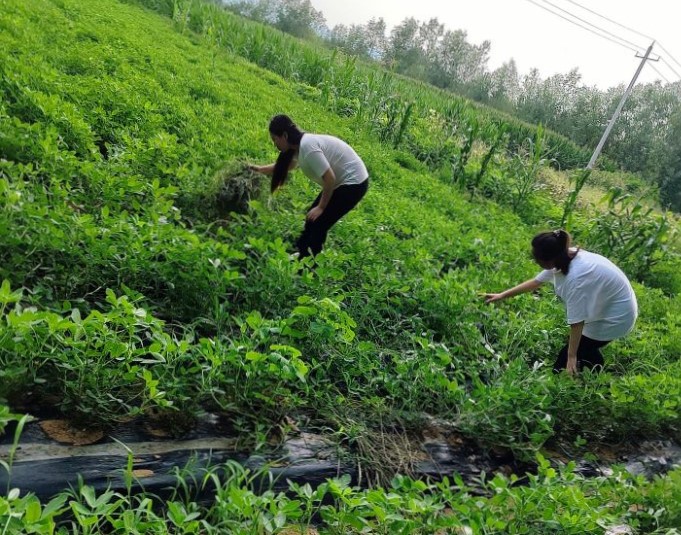圖為團(tuán)隊(duì)成員在花生地勞作 王文靜/攝