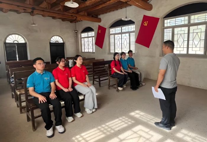 (帶隊老師張虎為實踐隊講授主題黨課,田浩辰攝)