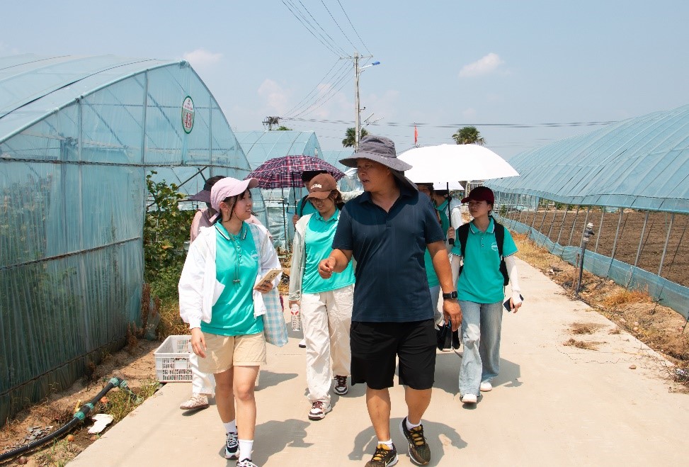 韓副書記向團(tuán)隊(duì)介紹文明鄉(xiāng)風(fēng)建設(shè)現(xiàn)狀。徐浩桐 林永杰 供圖