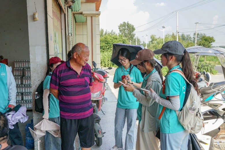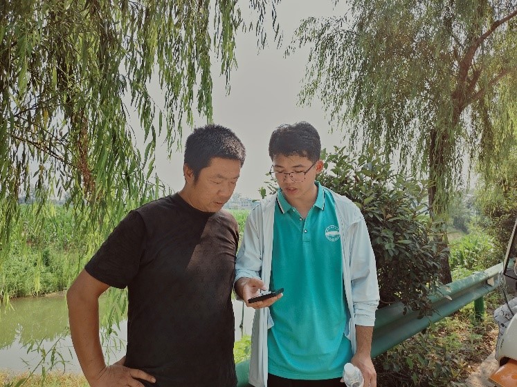 團(tuán)隊(duì)成員向村民了解宣傳工作。 徐浩桐 林永杰 供圖