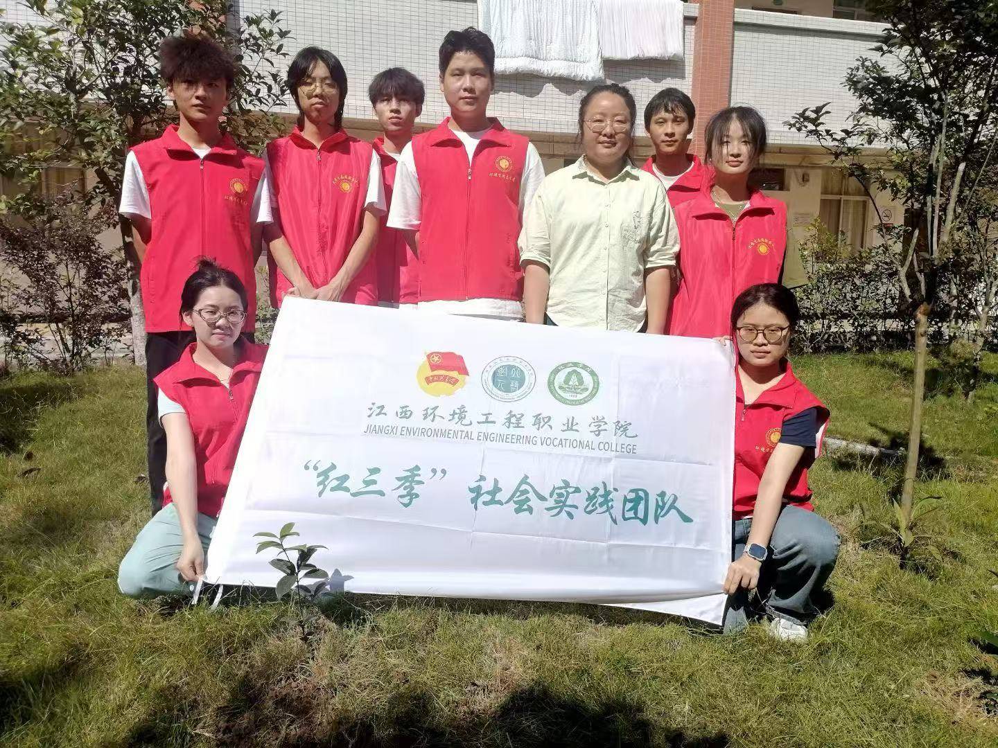 圖為實(shí)踐隊(duì)成員在江西環(huán)境工程職業(yè)學(xué)院校門口進(jìn)行合影留念。習(xí)宇萌 供圖