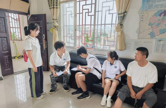 圖為實(shí)踐團(tuán)成員在與村民交談 任創(chuàng) 攝