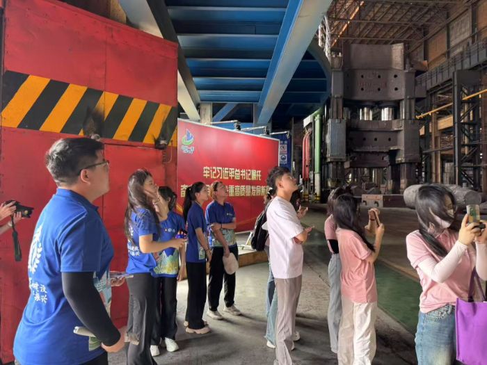 隨后,實踐團隊來到習總書記在中國一重的重要一站,深入重型機械生產車間,在轟鳴的機床與精密的裝配線間,三方成員深刻觸摸到“工匠精神”的千鈞分量。從大型工程機械的模塊化設計以適應山區道路運輸,到農用機械與高標準農田建設的參數匹配,每一個細節的打磨都凝聚著“追求極致、久久為功”的匠心。此次調研讓三方成員清晰了“大國重器”與“鄉村振興”的深層聯動邏輯:在黨建聯建的引領下,以匠心精神淬煉科技精度,以國際視野拓展應用邊界,將“大國重器”的硬核實力轉化為鄉村基建的“升級動能”,方能持續提升“基建興村”的質量指標與效益指數,讓科技強國的成果真正扎根鄉土、惠及民生。