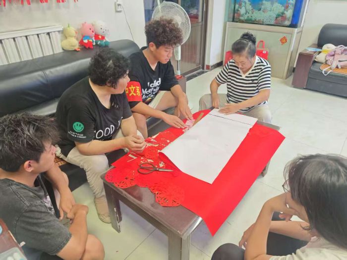 在改善鄉村環境的實踐中,隊員們以實際行動落實活動目標。活動開展期間,小隊成員共同商議時間規劃,明確分工后協同合作。活動啟動之初,志愿者們向村民發放垃圾分類宣傳材料,結合村里常見的垃圾類型,用接地氣的語言講解分類規則和環保的重要性。接下來,隊員們分組拿起清掃工具,對村內道路、公共活動場地等區域進行全面清理。大家各司其職清運垃圾、仔細清除衛生盲區,在共同努力下,村莊的整體面貌變得整潔如新。之后,充滿趣味的剪紙文化體驗活動正式拉開帷幕,隊員們不僅展示了精致的剪紙作品,解讀傳統紋樣的象征意義,還親自示范指導村民剪紙,讓傳統技藝在互動交流中展現出蓬勃的新生命力。