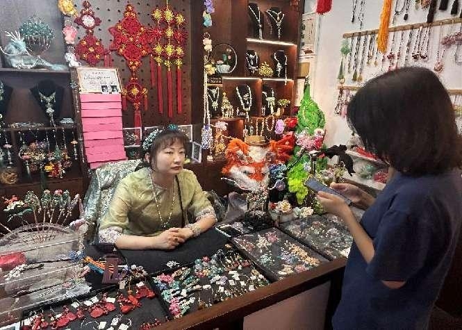 (圖為實踐團隊隊員采訪金陵繩結傳承人蓋靜老師。姚祥茹 供圖)