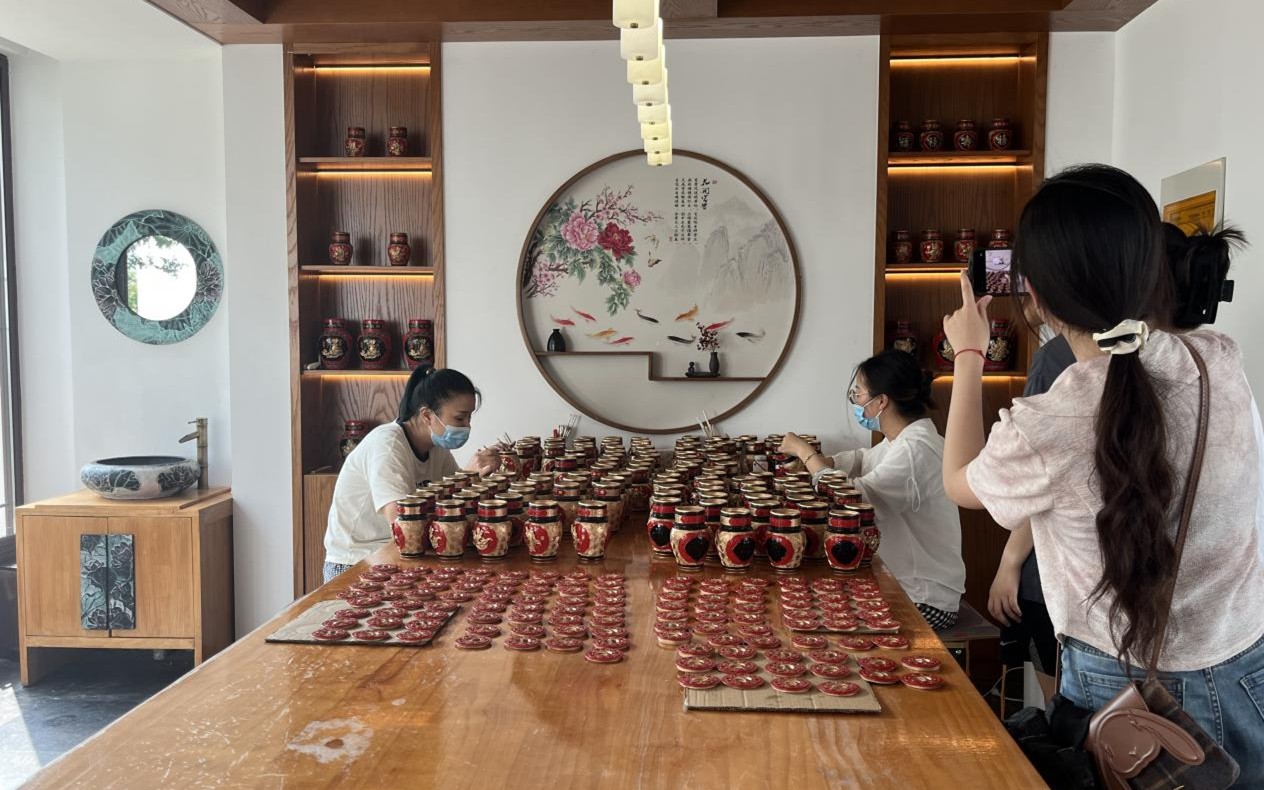 實(shí)踐小隊(duì)正在觀摩花雕酒外瓶的制作 趙梓騰供圖